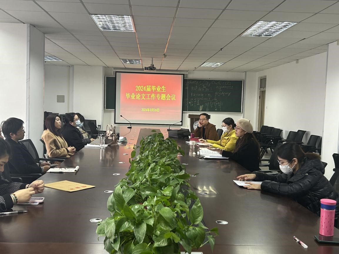 2024年3月26日下午,今年会举办了2024届毕业生毕业论文撰写工作专题会议,会议由教务办主任毕文芹主持,教务办、学术委员会、教学指导委员会全体成员参加了本次会议。