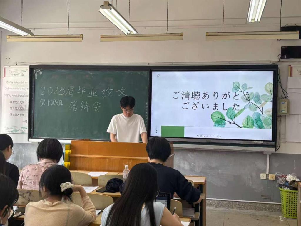 2025年5月13日下午2:30,2025届本科毕业论文答辩正式开始。本届答辩会共设17个答辩组,覆盖英语、日语、德语、商务英语四个专业257名毕业生,由73位老师组成答辩委员会对学生们的学术成果进行全方位检验。