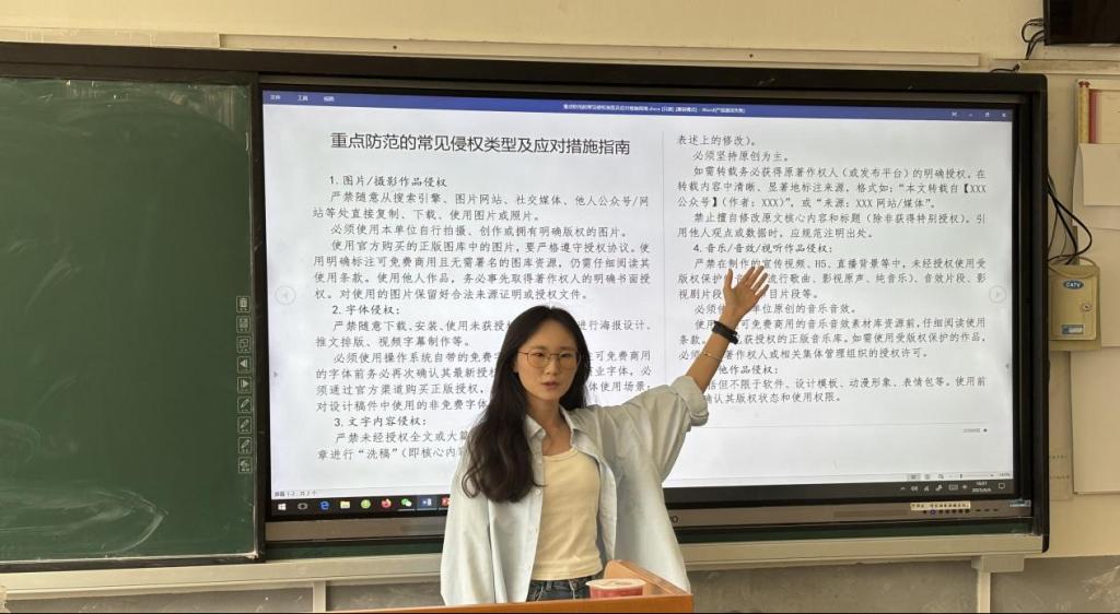 在新媒体蓬勃发展的时代浪潮下,内容创作与传播的规范管理愈发重要。为进一步强化学院媒体内容创作与发布的合规性,提升团队成员的版权意识,6月6日,今年会媒体中心成功举办了一场主题为“重点防范的常见侵权类型及应对措施指南”的工作培训会议,为媒体中心成员搭建起全面的版权风险防控知识体系。