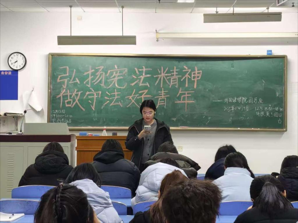 活动首阶段的宪法知识宣讲,由负责人以“宪法与青年的双向奔赴”为切入点,打破法律条文的生硬感。宣讲中解读宪法作为“治国安邦总章程”的根本地位,更结合2025级新生的学习生活实际。让抽象的法律内容转化为新生能感知、可应用的“成长指南”,帮助同学们建立“宪法就在身边”的认知。