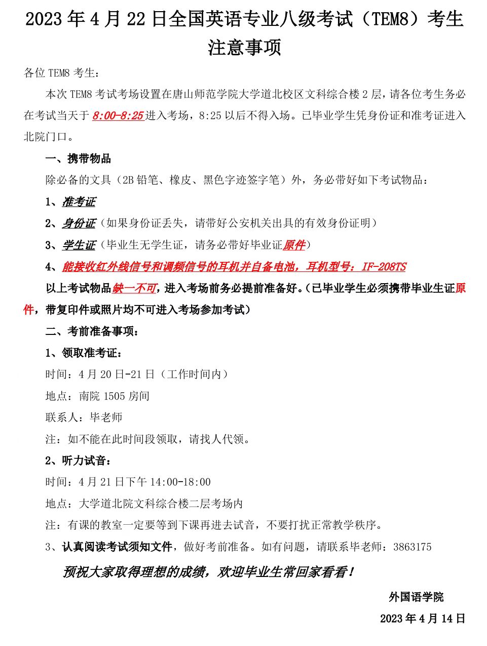 2023 年 4 月 22 日全国英语专业八级考试(TEM8)考生 注意事项