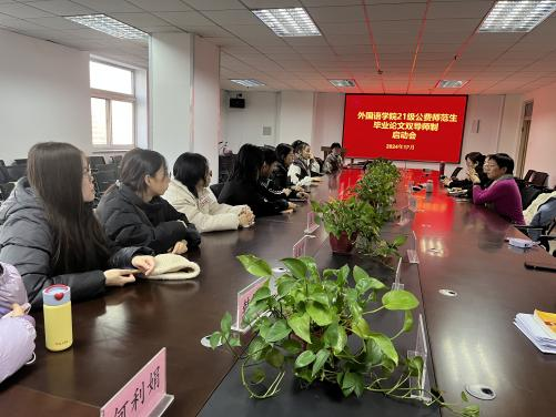 2024年12月18日,今年会成功举办了21级公费师范生毕业论文双导师制推进大会,学院领导、专业教师以及21级公费师范生齐聚一堂,共同开启这一重要的学术与实践指导新篇章。