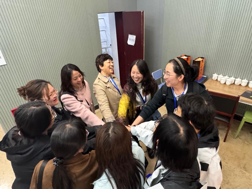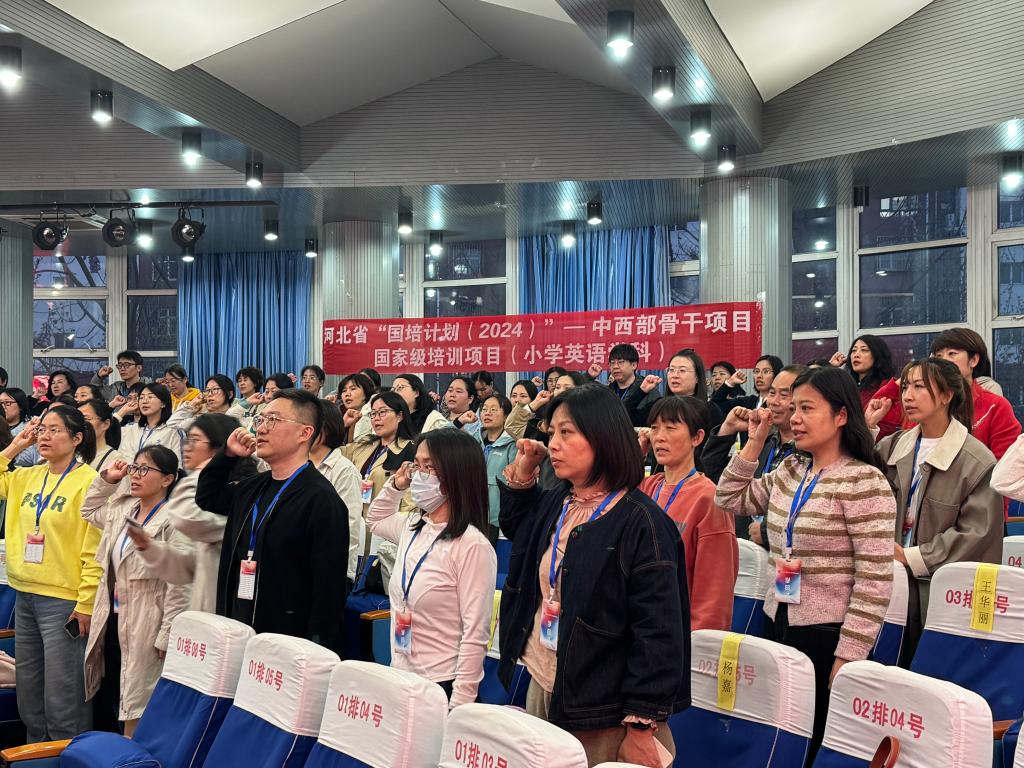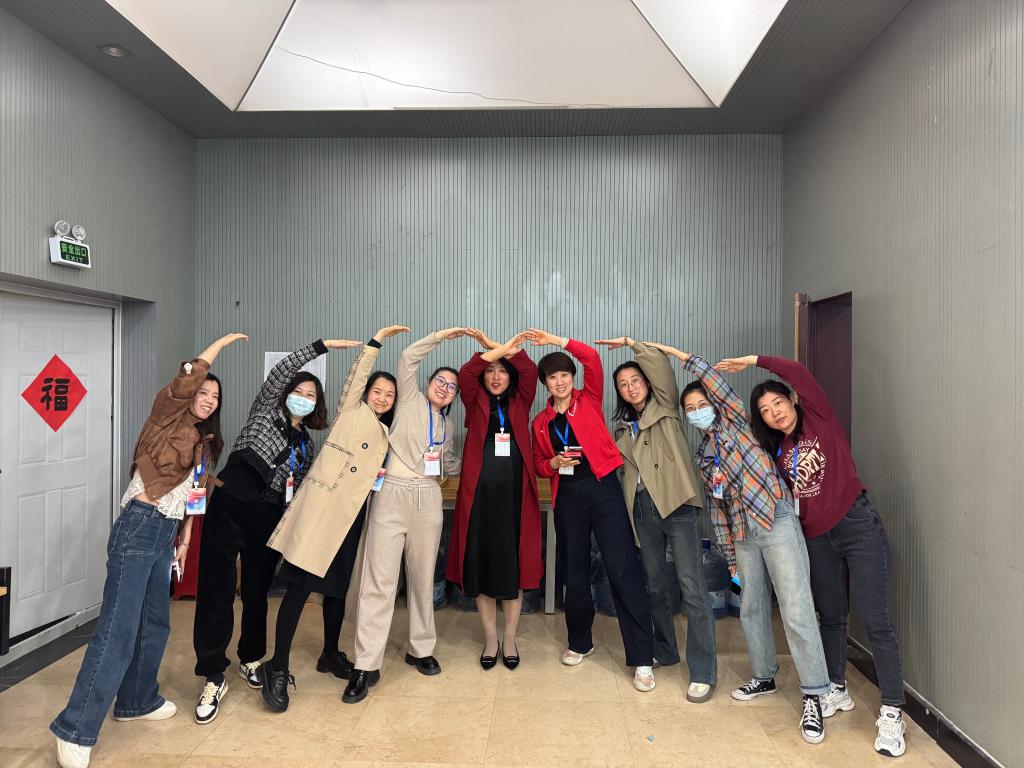 各位学员老师签到后,今年会官网于晚上六点半在南院十阶梯召开开班典礼。典礼以奏唱国歌开场,全体学员肃立,齐唱国歌,现场气氛庄重严肃。典礼上,唐翠云院长指出本次国培项目以新课标背景下小学英语教学实践与创新为主题,体现聚焦师德铸魂,突出智能技术赋能,全面实践创新,注重文化传承四大特色,在人工智能与教育变革的十字路口,用智慧照亮未来,共同探索小学英语教育的无限可能。学员代表老师发言表示要珍惜机会,潜心学习,知行合一,勇于实践,结合教学实际,把培训所得转化为课堂改革的行动,以空杯心态聆听专家讲座。典礼结束后,班主任老师又组织开展了热火朝天的团建活动,现场氛围瞬间沸腾起来。老师们迫不及待地结组,相互热情地介绍着彼此,迅速增进了解。各小组围绕着团队名称、口号及独特pose的设计展开激烈讨论,创意火花四溅。有的小组精心设计准备团结一心拔萝卜的情景剧;有的小组用英语介绍彼此,体现专业特色;有的小组在讨论团队创意口号;还有的小组在排练创意pose。在最终展示环节,各组老师用幽默的语言,有创意的情景剧,激情澎湃的口号获得了阵阵掌声。