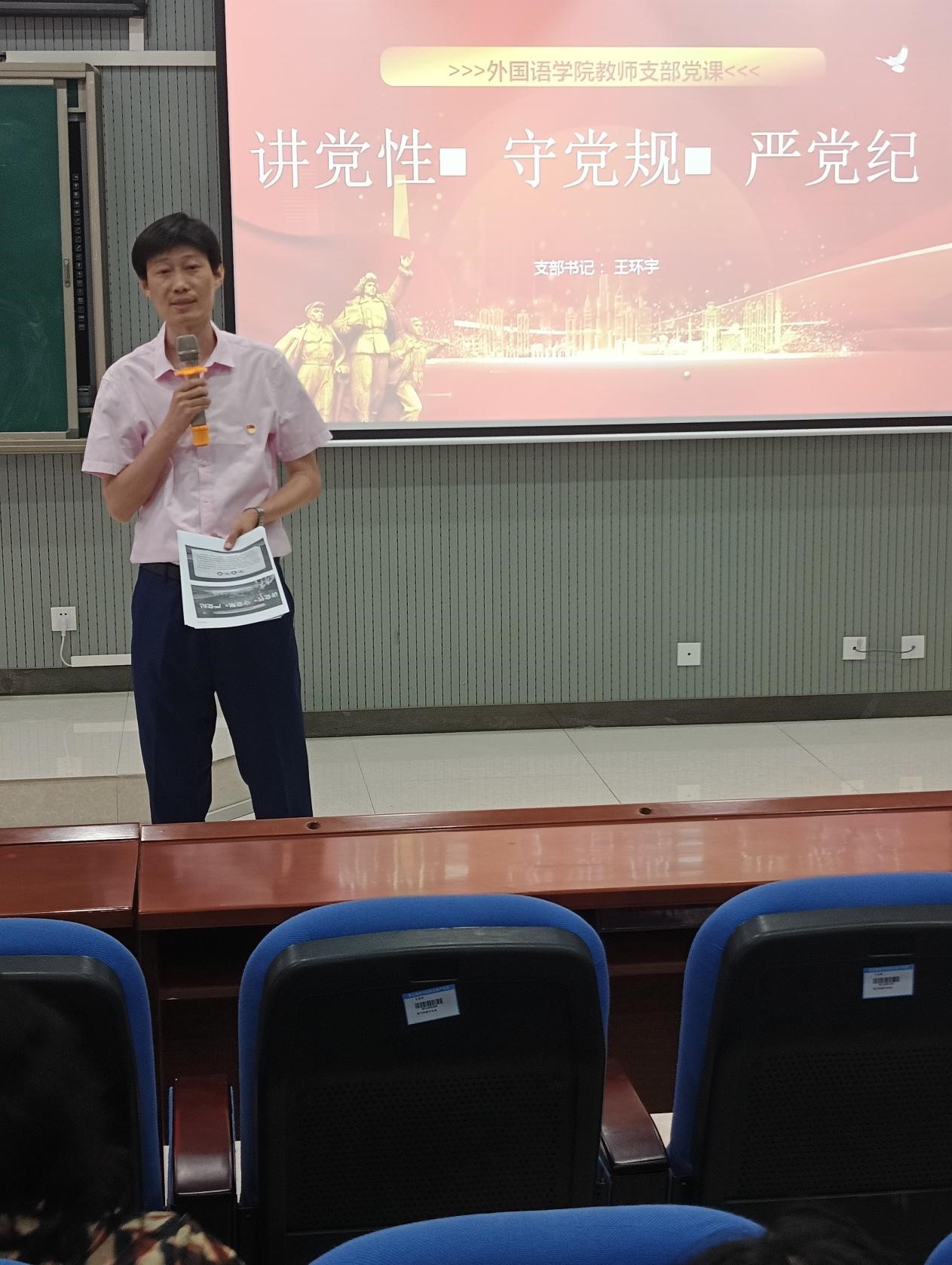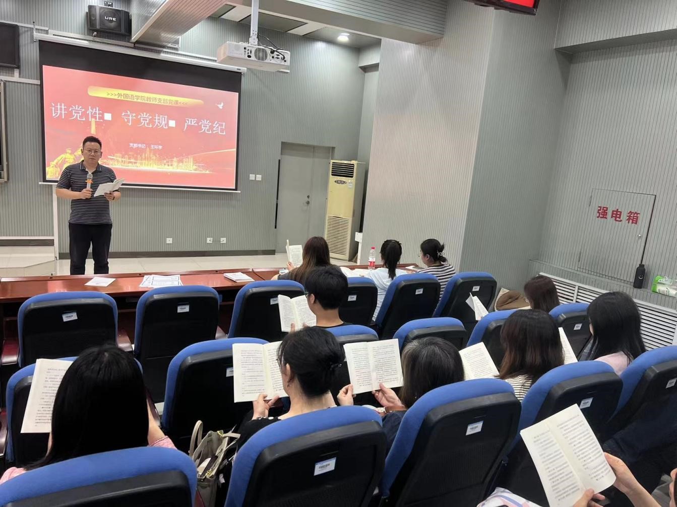 为切实推动党纪学习教育走深走实,按照《中共今年会官网委员会关于开展党纪学习教育的工作方案》有关要求,5月21日下午,今年会教师党支部书记王环宇同志以“讲党性、守党规、严党纪”为题,为全体师生党员讲授党纪学习教育专题党课,教师党支部宣传委员赵鹏同志带领大家深入学习《中国共产党纪律处分条例》。