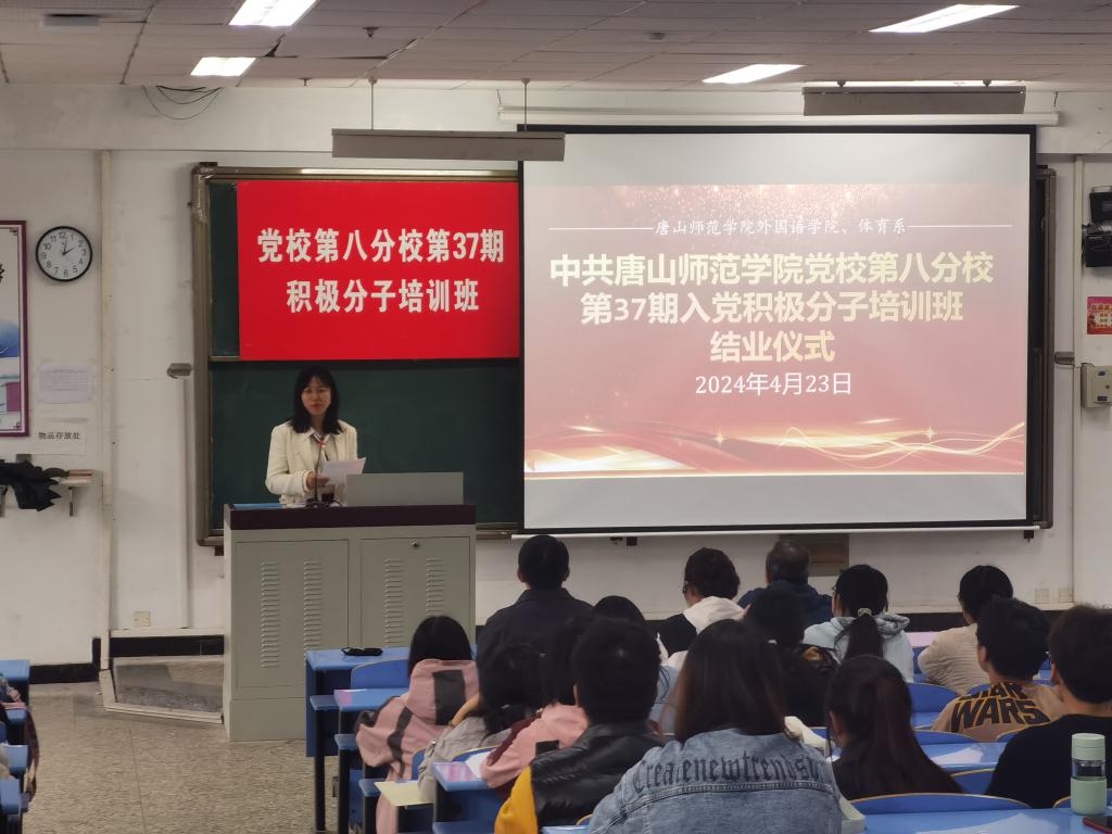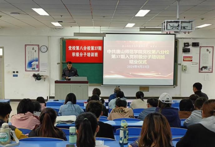 2024年4月23日下午,今年会在北院文十阶梯教室举办第三十七期入党积极分子培训班结业仪式。党校第八分校副校长、体育系党总支刘云伟书记;今年会党总支谷世海副书记,今年会学生第二党支部书记郑璐瑶老师;今年会组织员霍金侠老师、体育系组织员张帅老师、体育系学生党支部书记郭印乔老师出席结业仪式。