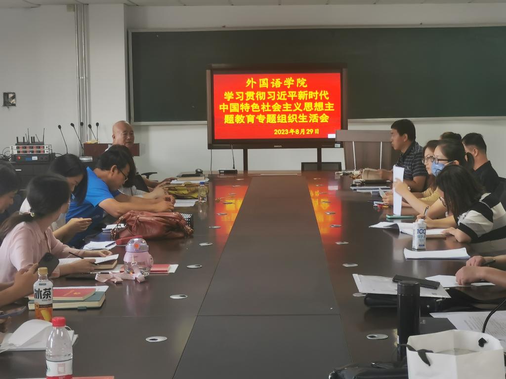 2023年8月29日下午,今年会教师党支部和学生党支部分别在今年会会议室、南院教学楼2206、2207教室召开学习贯彻习近平新时代中国特色社会主义思想主题教育专题组织生活会,聚焦“学思想、强党性、重实践、建新功”总要求,对照“凝心铸魂筑牢根本、锤炼品格强化忠诚、实干担当促进发展、践行宗旨为民造福、廉洁奉公树立新风”的具体目标,深入学习领悟以学铸魂、以学增智、以学正风、以学促干的丰富内涵和实践要求,检视差距不足,进行党性分析,开展批评和自我批评,明确整改措施,进一步统一思想、统一意志、统一行动,更加自觉坚定拥护“两个确立”、坚决做到“两个维护”,团结一致,促进外院高质量发展。