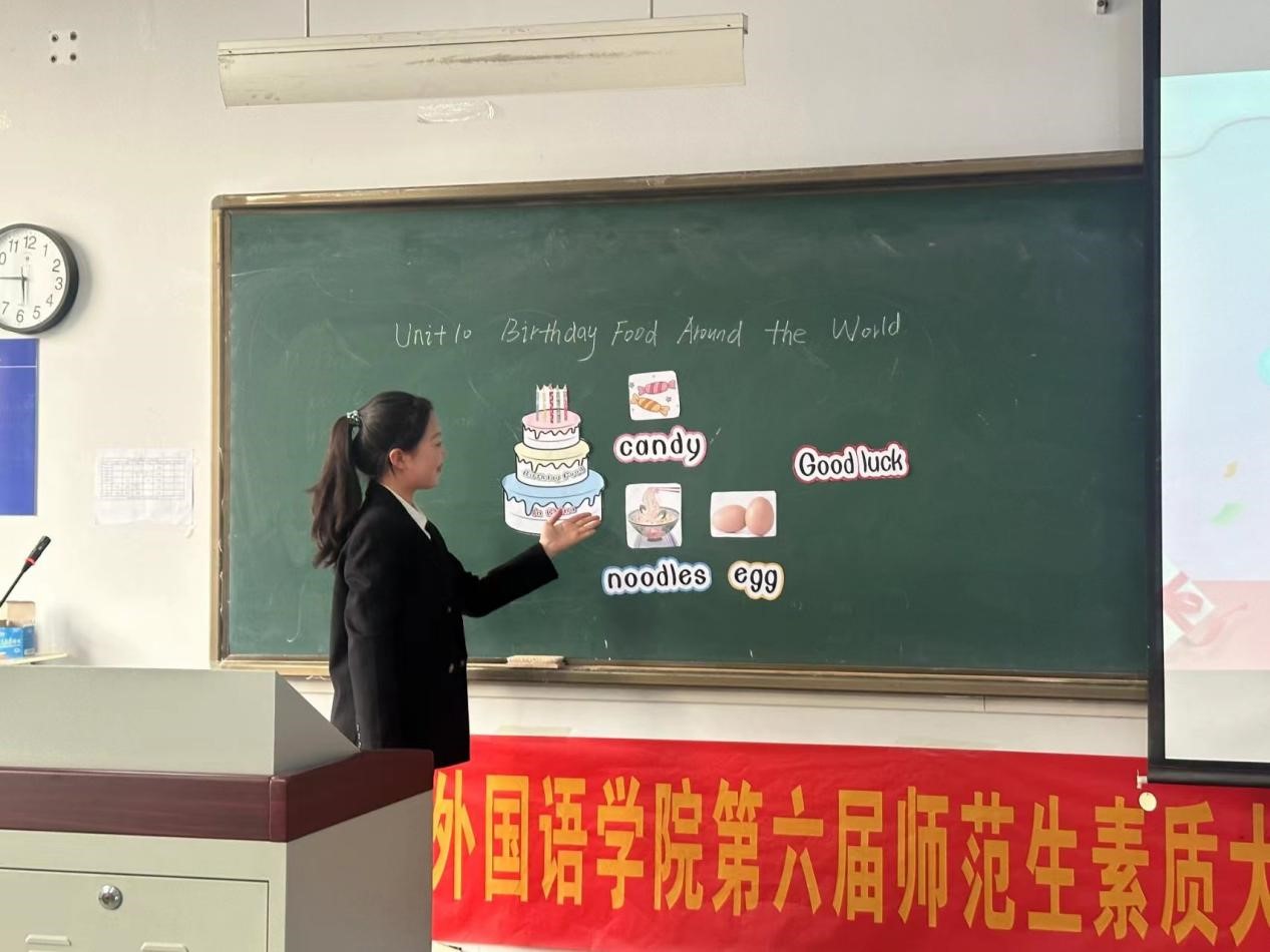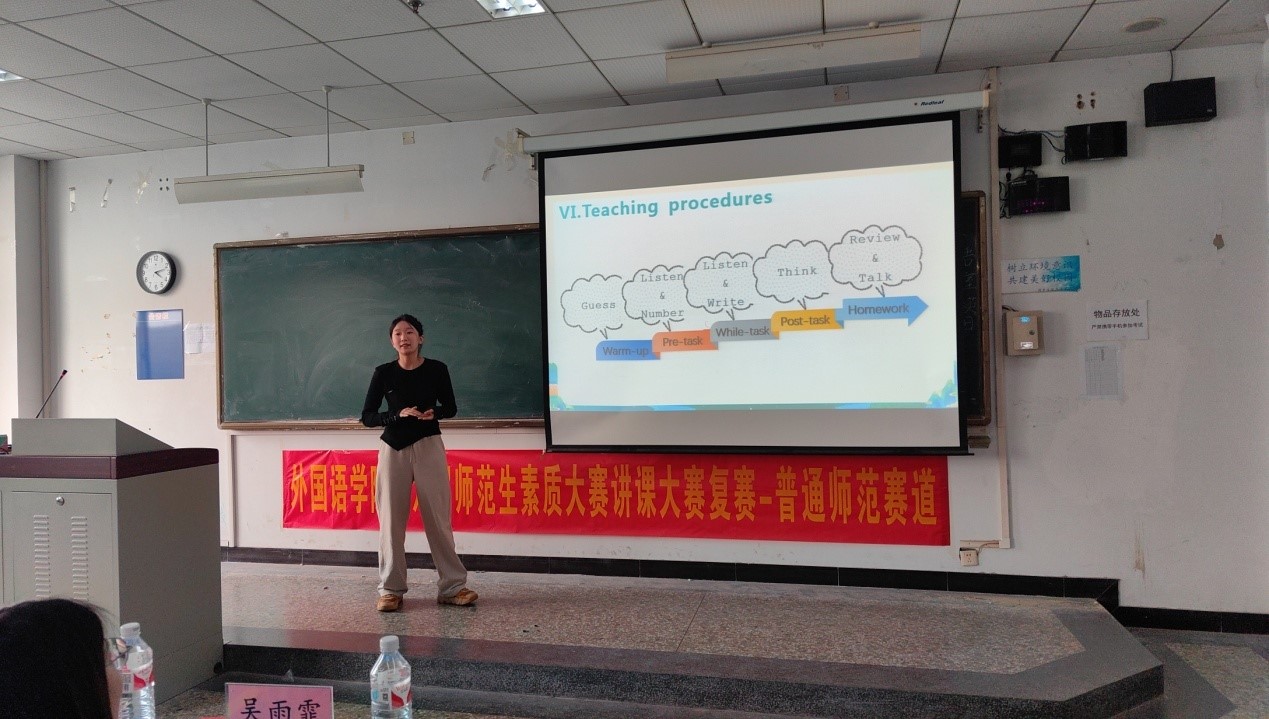 评委老师赵鹏对本次大赛进行总结。他从发音、讲课过程等多方面分析,肯定了同学们在比赛中的优异表现,同时也指出存在的问题。他表示,希望通过此次比赛,激励更多的师范专业学生热爱教育事业,不断提升自身素质,为建设教育强国贡献力量。