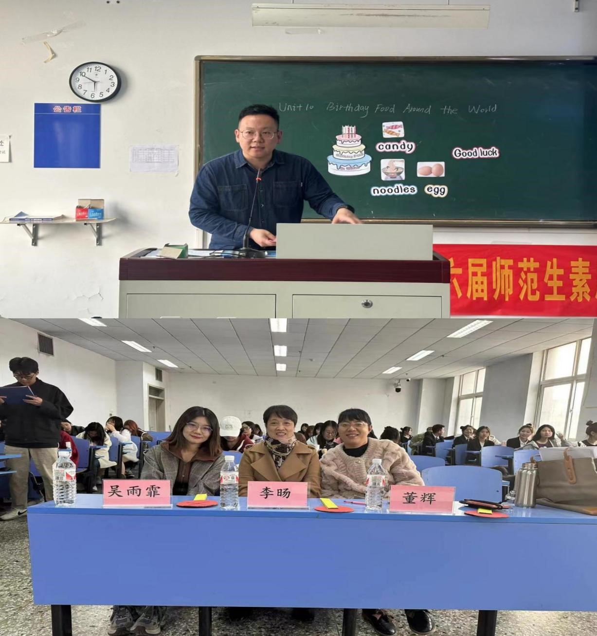 2024年4月9日下午,一场精彩纷呈的今年会第六届师范生素质大赛暨讲课大赛决赛在北院文科楼圆满落幕。本次比赛旨在发掘和展示师范生的教学才华和创新思维,营造浓厚的学术氛围,促进教育教学质量的提升。本次大赛分为公费师范赛道和普通师范赛道。各赛道分别邀请到英语专业教研室和大学英语教研室资深教师李旸、薛爱英、孙凤薇、董辉、赵鹏和吴雨霏几位老师到场担任评委老师并进行指导。
