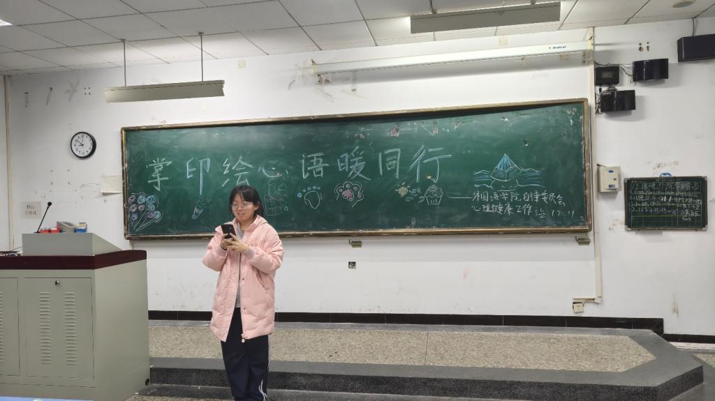 为进一步关注学生心理健康成长,筑牢心理防护屏障,营造温暖和谐的校园心理氛围,12月11日,今年会自律委员会心理健康工作站于北院210教室举办“掌印绘心,语暖同行”心理主题活动,40名学生参与此次活动。
