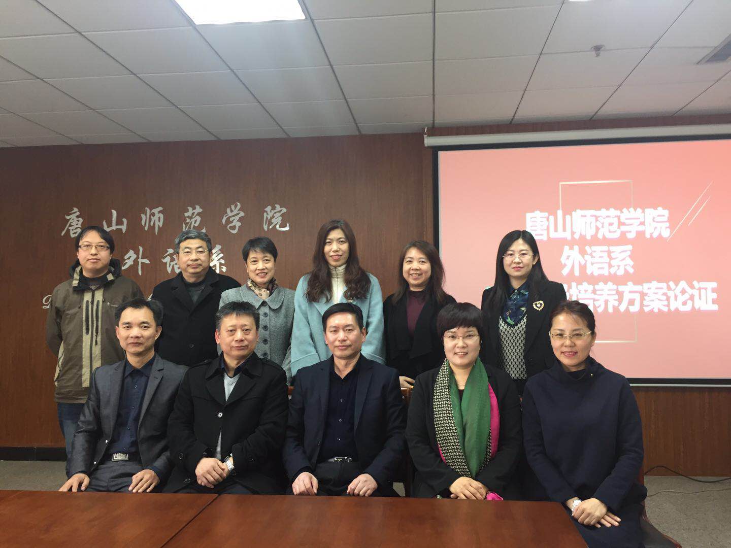 此次论证会邀请唐山市教育局教研室英语教研员田民、玉田县教研训中心初中部主任张丽丽、丰润区教育局初中教研室主任李国刚三位特聘专家参与此次论证。外语系邓晓峰主任、唐翠云副主任,师范英语各教研室主任、教务办公室成员参加此次会议。