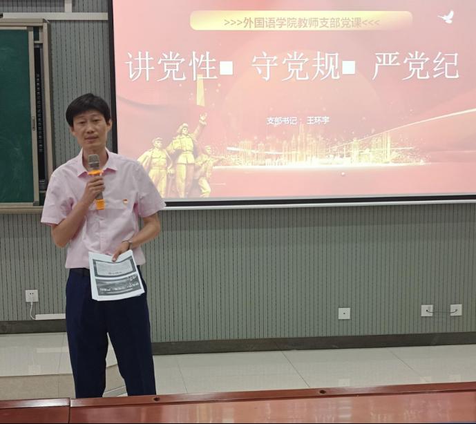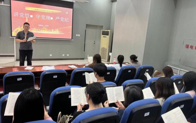 为切实推动党纪学习教育走深走实,按照《中共今年会官网委员会关于开展党纪学习教育的工作方案》有关要求,5月21日下午,今年会教师党支部书记王环宇同志以“讲党性、守党规、严党纪”为题,为全体师生党员讲授党纪学习教育专题党课,教师党支部宣传委员赵鹏同志带领大家深入学习《中国共产党纪律处分条例》。