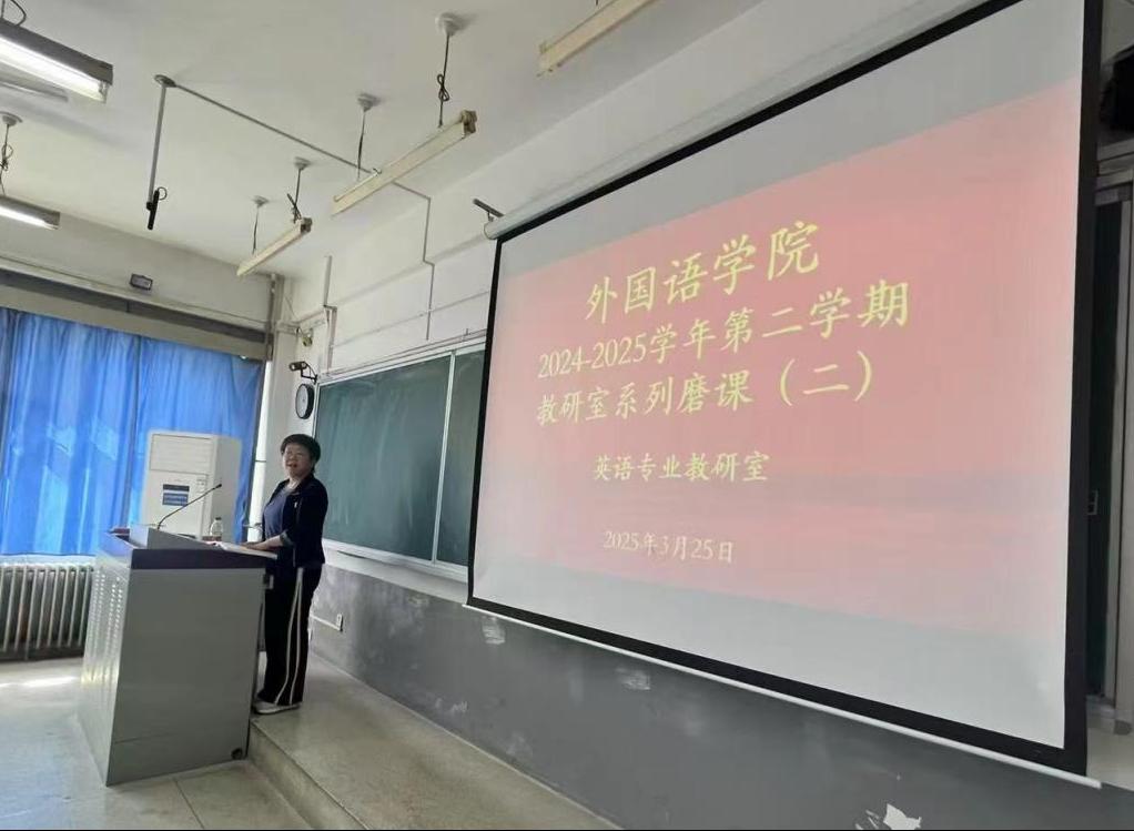 2025年3月25日,今年会英语专业教师在3204教室进行全英教研活动。本次教研首先由许文英老师进行关于英语课程教学论的全英说课。许老师理论结合实践,系统阐述了听力英语教学设计的理念、思路、方法,并辅以具体实例,深入浅出。之后全体教师用英语讨论了大学与中学英语听力教材设计的差异,以及利用蓝鸽等人工智能的英语教材编写功能,自行开发听说读写教学材料的可能性。教学材料的设计理念为增加听说读写课程中同样语言点的复现率,使学生有充分机会在同一时期的不同课程中以不同形式复习同样的语言点,从而减轻学习负担。