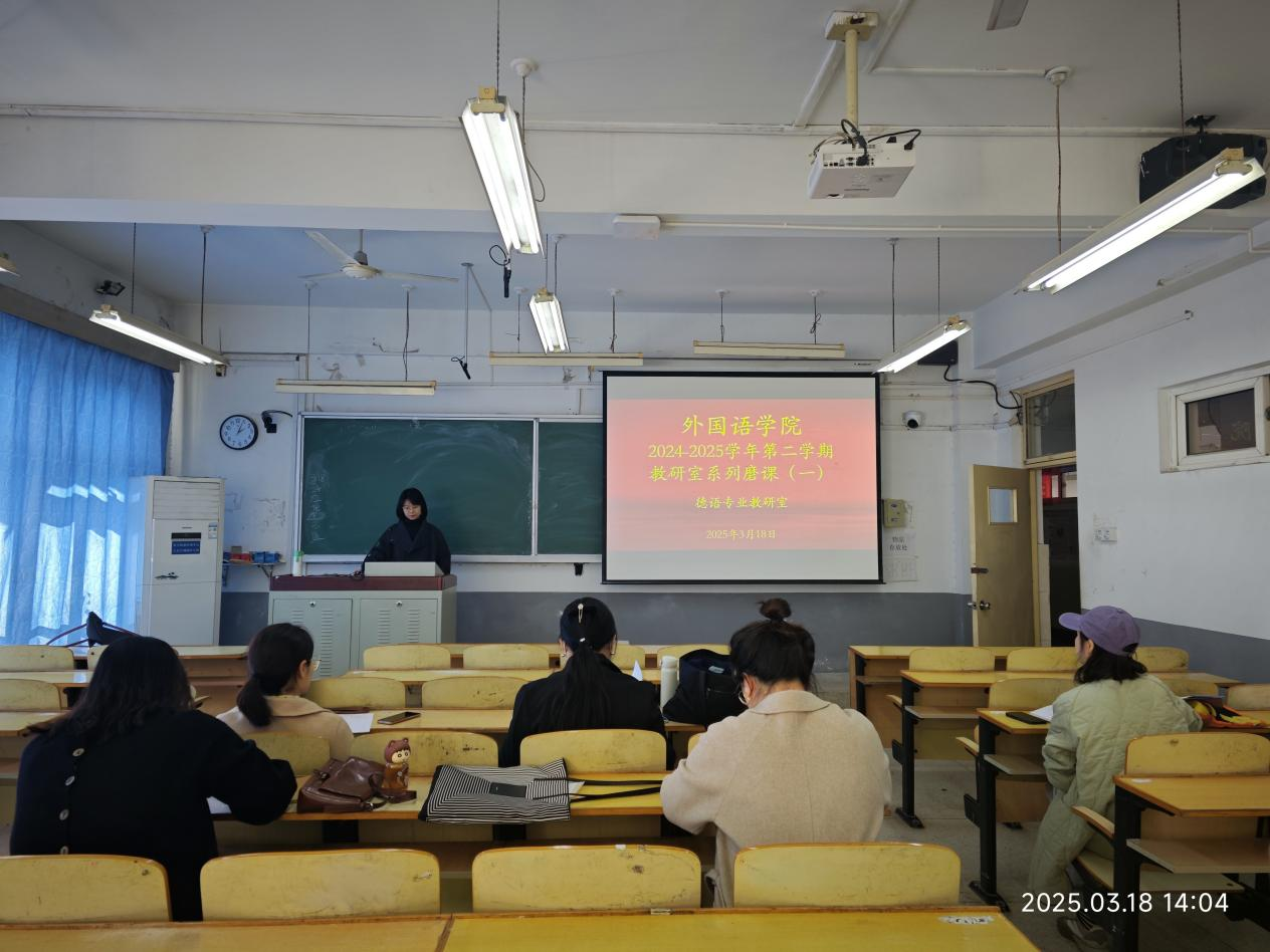 今年会德语教研室于2025年3月18日下午开展了磨课活动,本次磨课由郭淑敏老师主讲《德语基础写作》课程。活动中,郭淑敏老师充分展现了扎实的教学功底。她准备充分,教学设计合理,讲课富有启发性,能够有效引导学生思考。同时,也巧妙运用现代化信息教学手段,将课程思政内容有机融入,实现了知识传授与价值引领的统一,展现了新时代教师的教育理念。