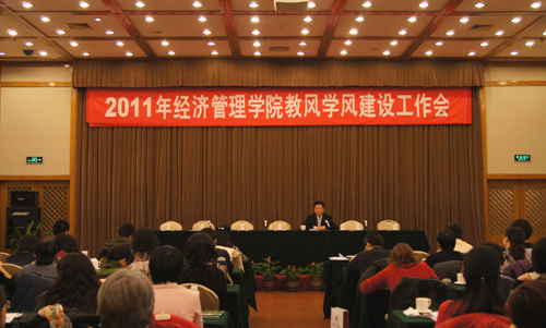 会上,刘永祥院长以学风建设、教风建设为主题,结合学院实际,强调要按照学校要求和"内修品质、外树形象、重点突破、整体推进"的发展思路,务实开展教风建设、学风建设。他在总结学院2011年教学、学生主要工作的基础上,对学院教师提出了新的要求,希望大家夯实基础,认真将工作做实做细,以高度 的责任感认真抓好学风教风建设工作,争取将学院的教风学风建设工作推上新的台阶。